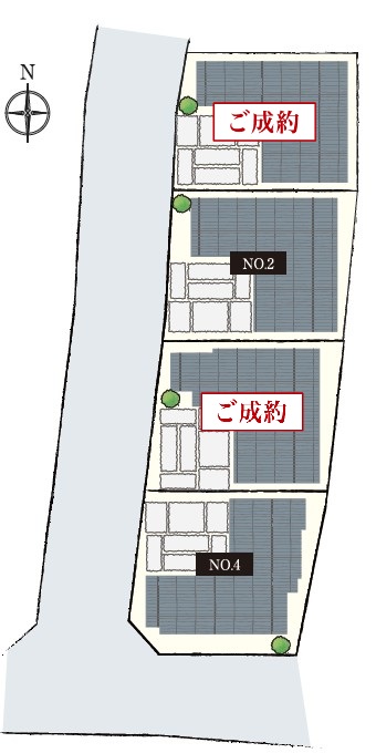 | 区画 | 敷地面積 | 建物延床面積 | 間取 | 販売価格 | 成約状況 |