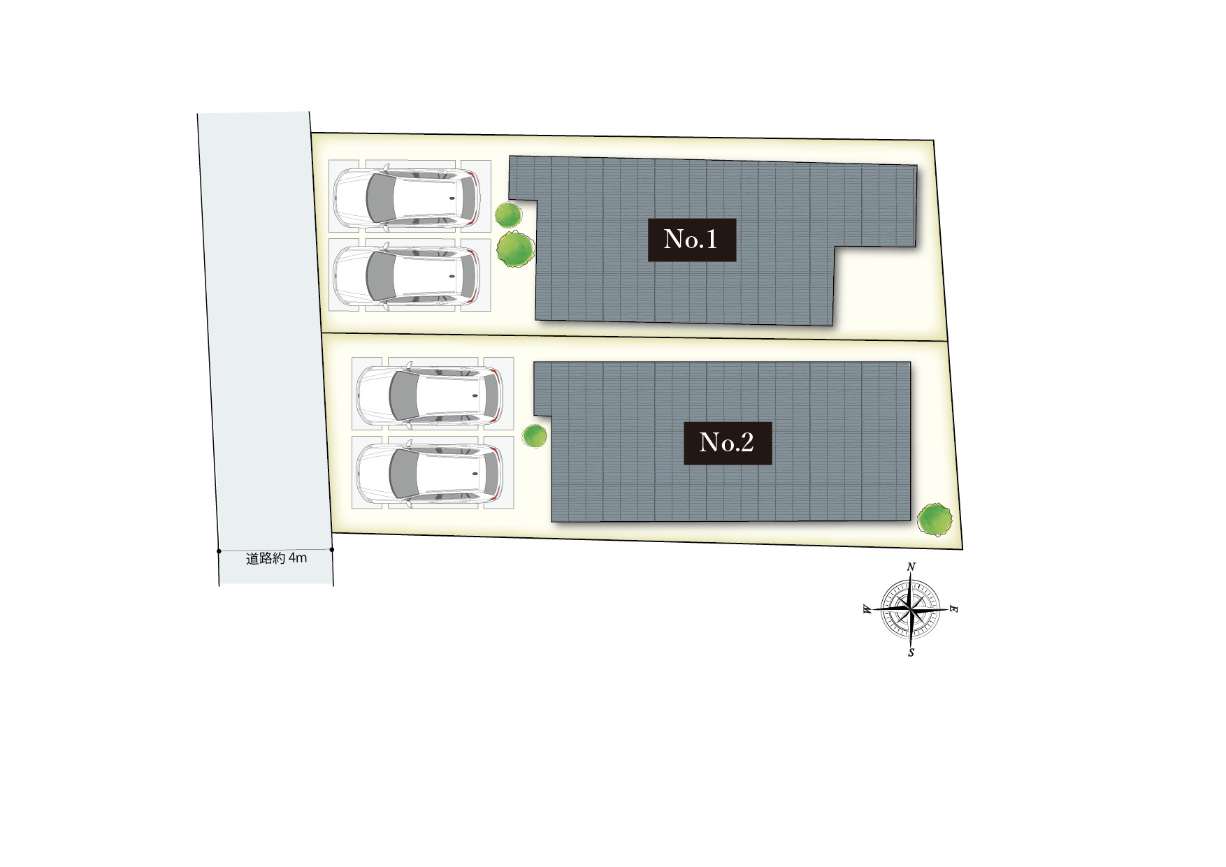 | 2 | 150.26㎡(45.45坪) | 112.05㎡(33.89坪) | 4LDK+ヌック+土間収納+WIC | 未定 |